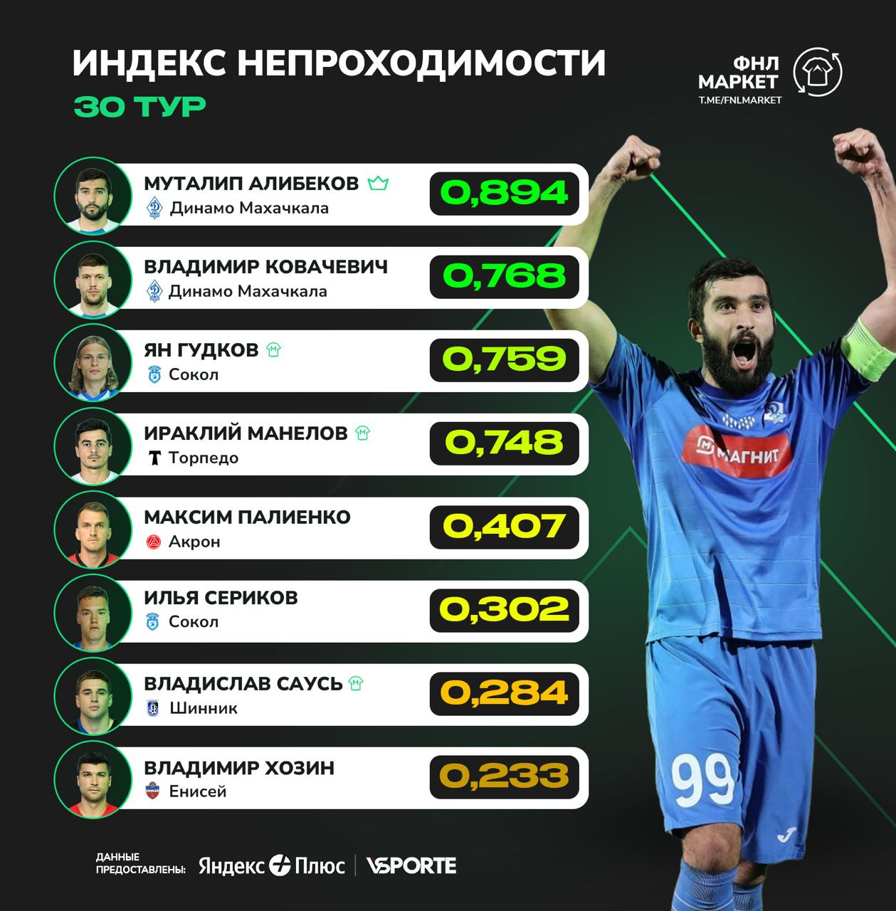 Защитники Ян Гудков и Илья Сериков из саратовского «Сокола» вошли в число лидеров по индексу непроходимости по итогам 30-го тура Мелбет Первой лиги.