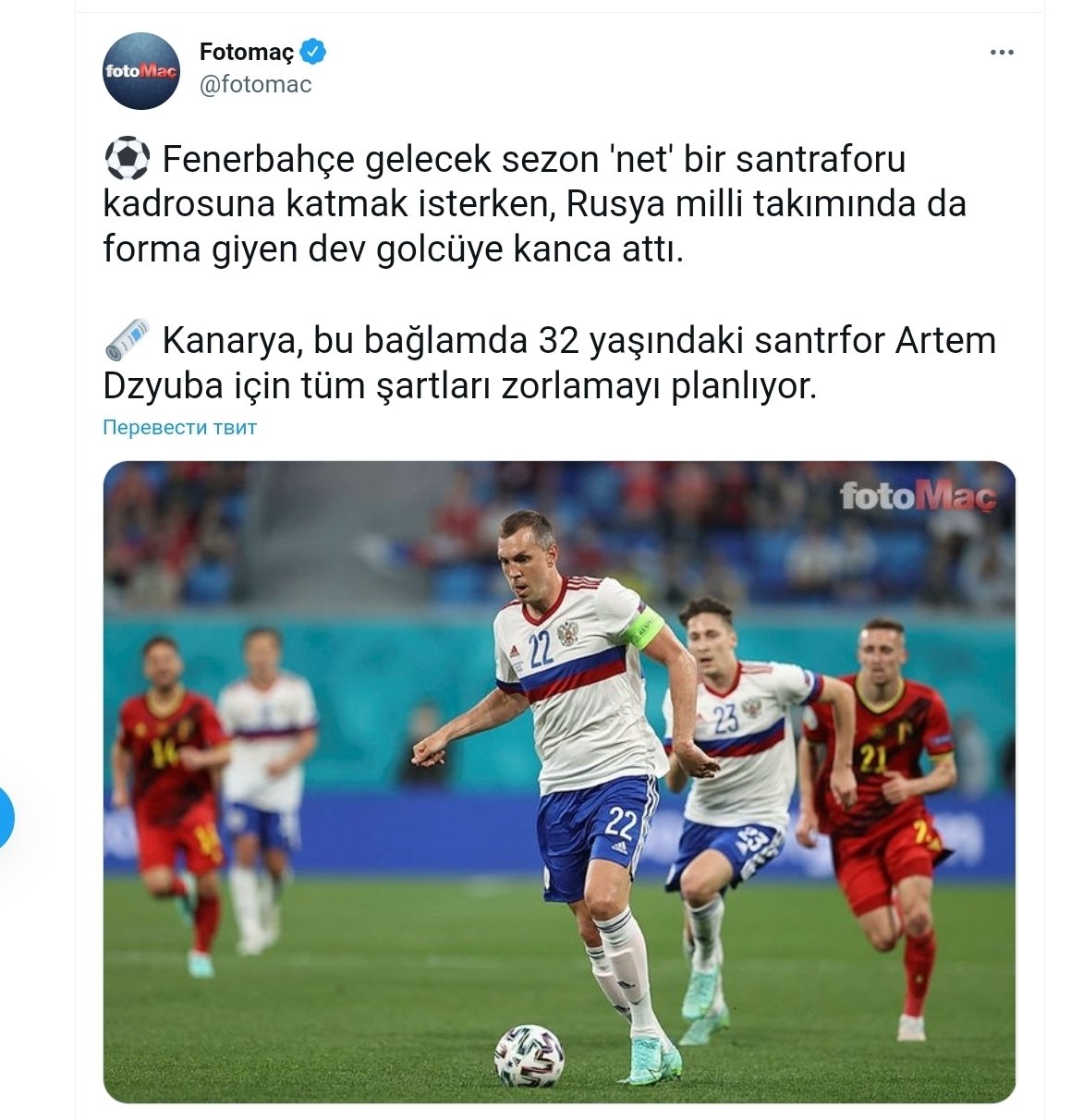 «Фенербахче» интересуется нападающим петербургского «Зенита» и сборной России Артёмом Дзюбой. Клуб в действующее трансферное окно планирует найти классического центрфорварда. Об этом сообщает турецкий спортивный портал Fotomac.