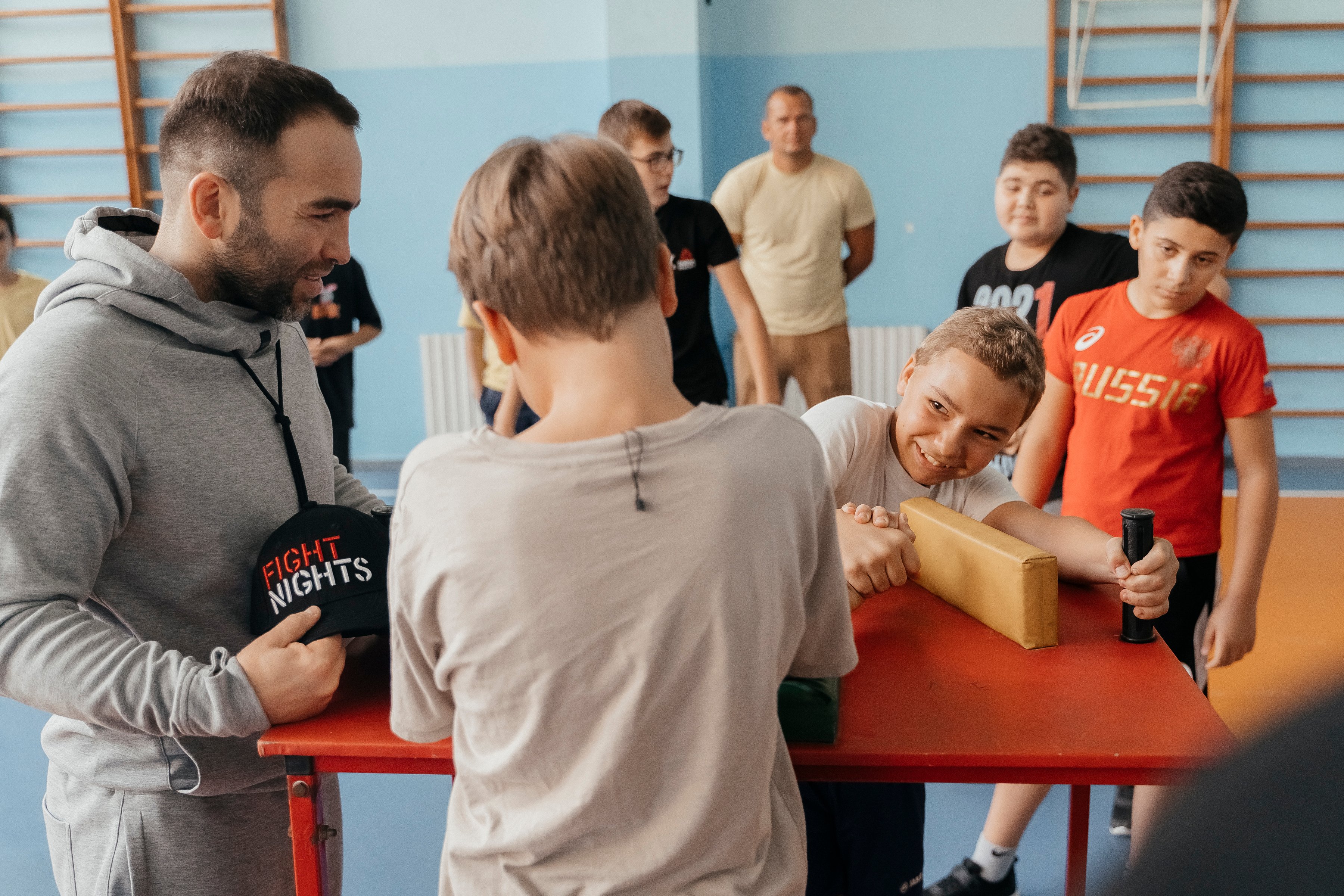 Но не только победа в конкурсе стала неожиданностью для учителей и школьников. На торжественное вручение приехал президент промоушена AMC Fight Nights Камил Гаджиев, который провел для учеников эстафету и подарил памятные призы.