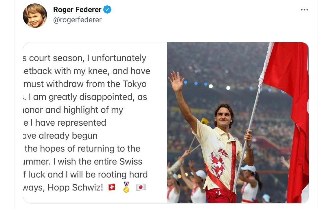 Олимпийский чемпион в парном разряде Роджер Федерер заявил у себя в «Твиттере», что пропустит предстоящие Олимпийские игры в Токио.