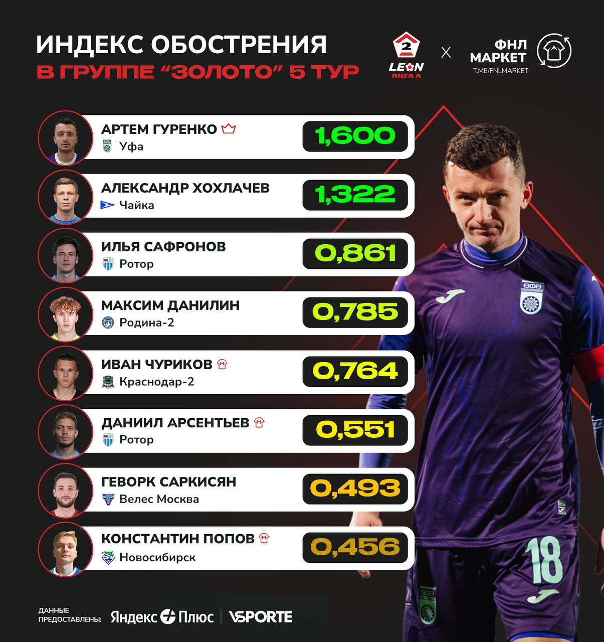 Нападающие волгоградского «Ротора» Илья Сафронов и Даниил Арсентьев вошли в топ-8 самых обостряющих футболистов пятого тура LEON-Второй лиги А в группе «Золото»