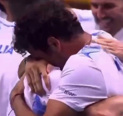 После второй победы в финальной серии со сборной Нидерландов, когда итальянец Янник Синнер обыграл Таллона Грикспора (7:6 (7:2), 6:2), Берреттини расплакался на плече у тренера.
