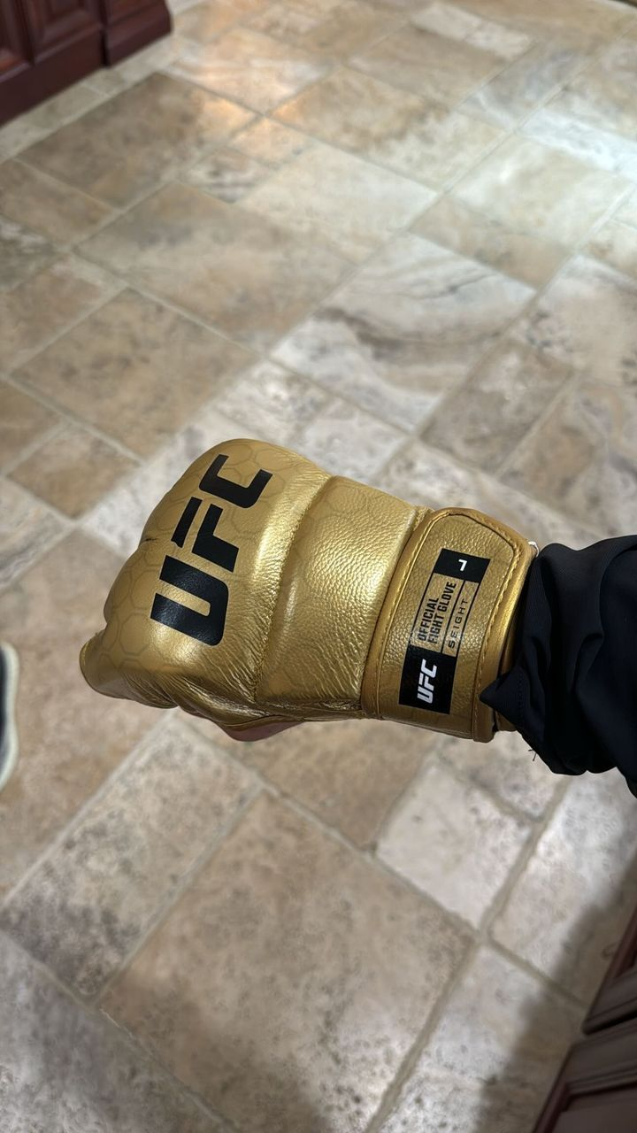 Фото: Махачев показал золотые перчатки, в которых проведёт бой с Порье