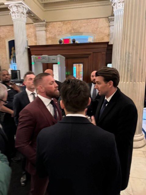 Отмечается, что никто из правительства Ирландии не прибыл на церемонию. Макгрегор прогулялся по Капитолию и пообщался с известными политиками.