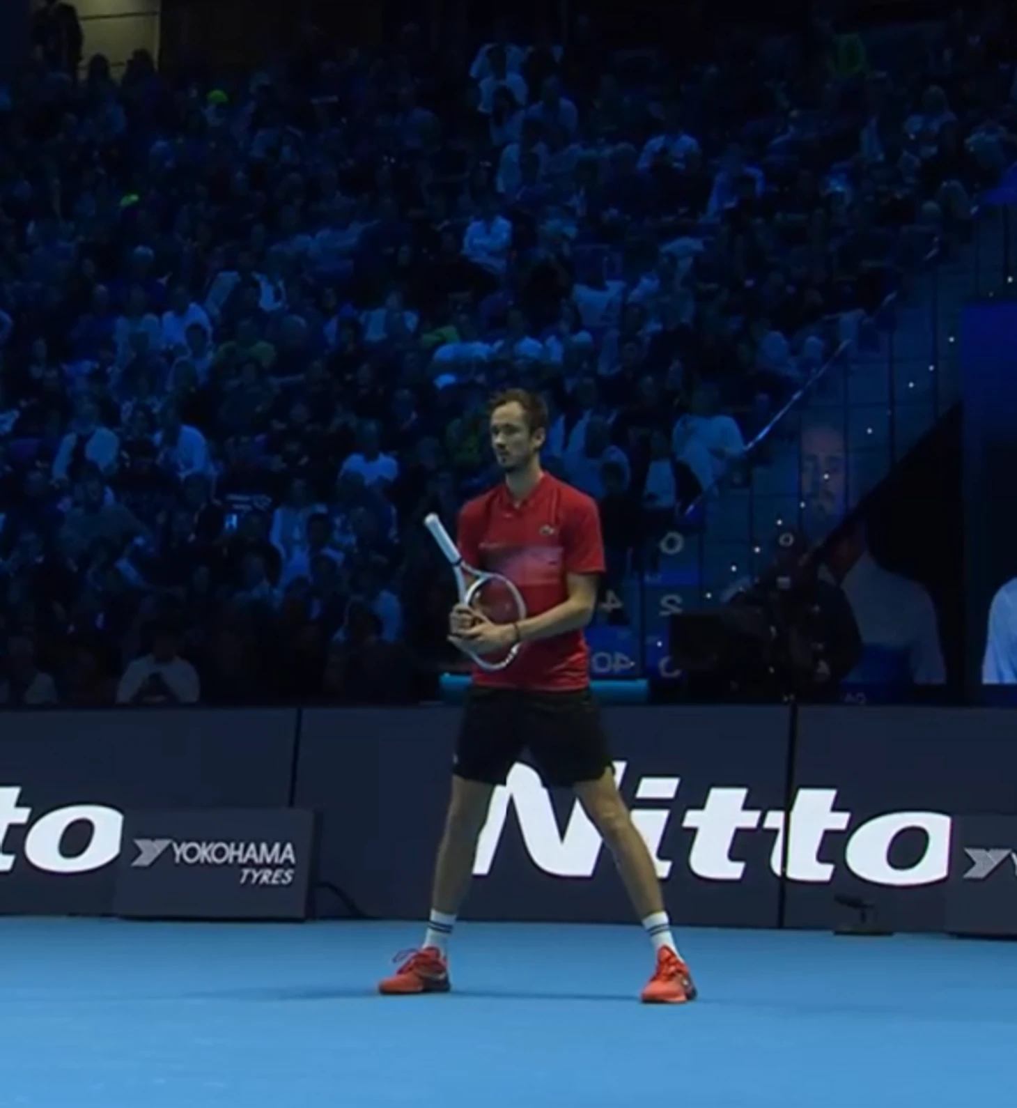 Фото: Медведев принимал подачу Фритца рукояткой ракетки в матче Итогового турнира