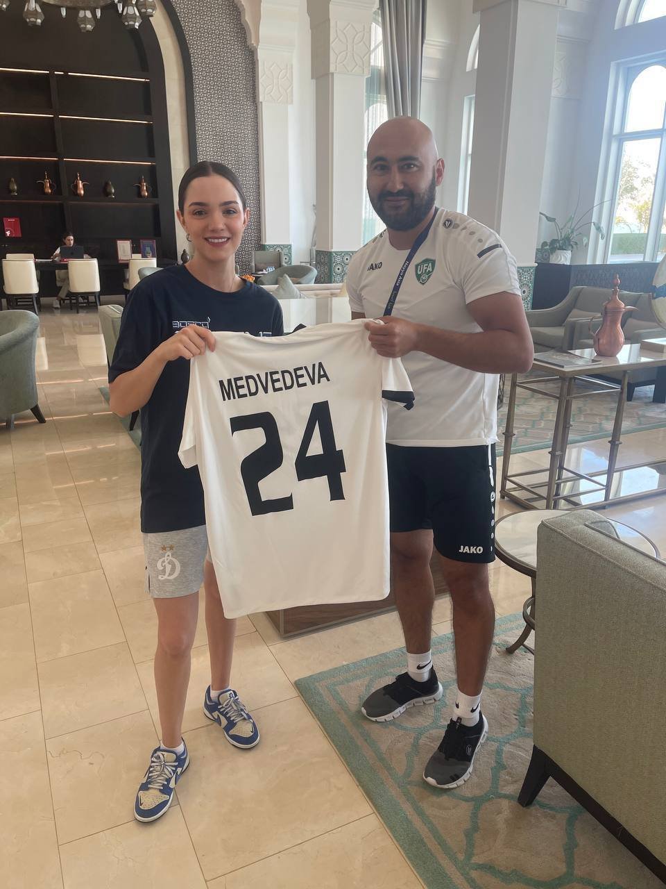 Фото: Медведева получила в подарок именную футболку сборной Узбекистана на Кубке Азии
