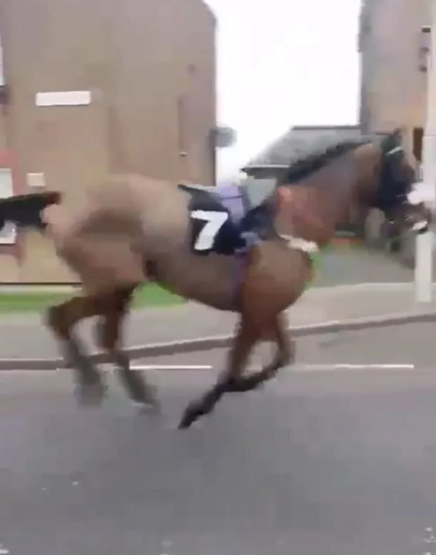 Фото: скаковой жеребец сбежал с турнира в Шотландии и проскакал по дорогам города