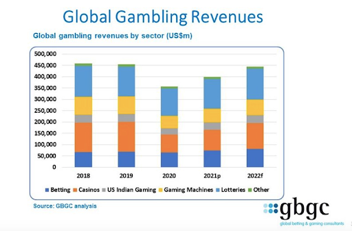 В 2021 году объём всех доходов от азартных игр вырос на 12% и достиг 399 миллиардов долларов.