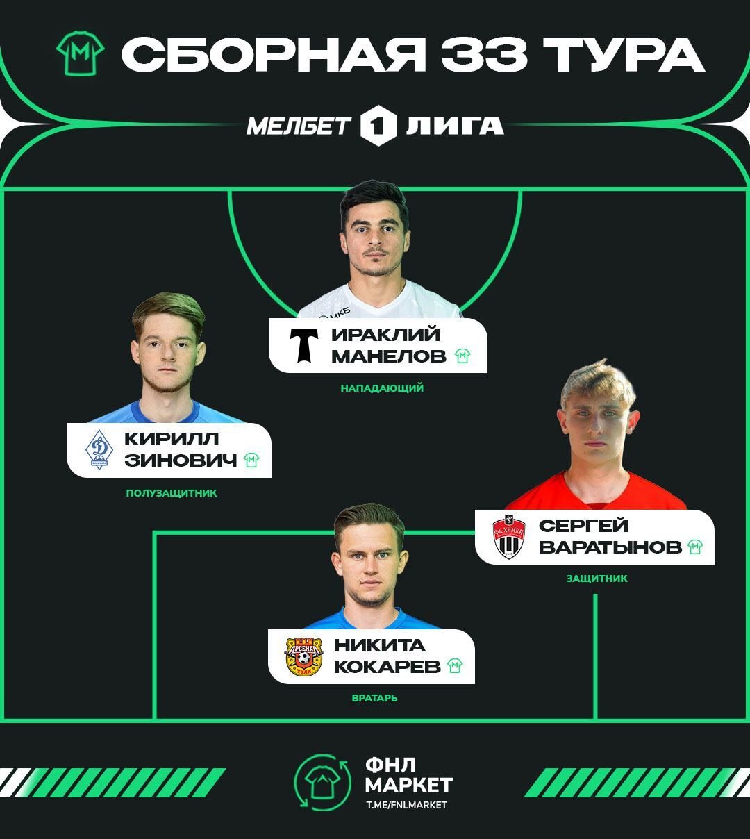 Вратарь тульского «Арсенала» Никита Кокарев попал в молодёжную сборную 33-го тура Мелбет Первой лиги.