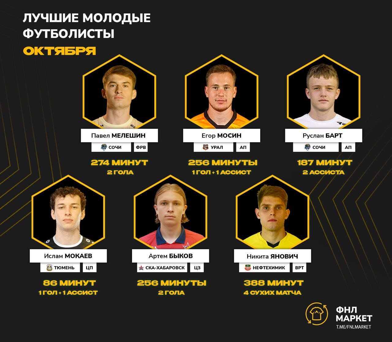 Полузащитник «Тюмени» Ислам Мокаев номинирован на звание лучшего молодого игрока октября в Мелбет-Первой лиге. Об этом сообщает телеграм-канал «ФНЛ Маркет».