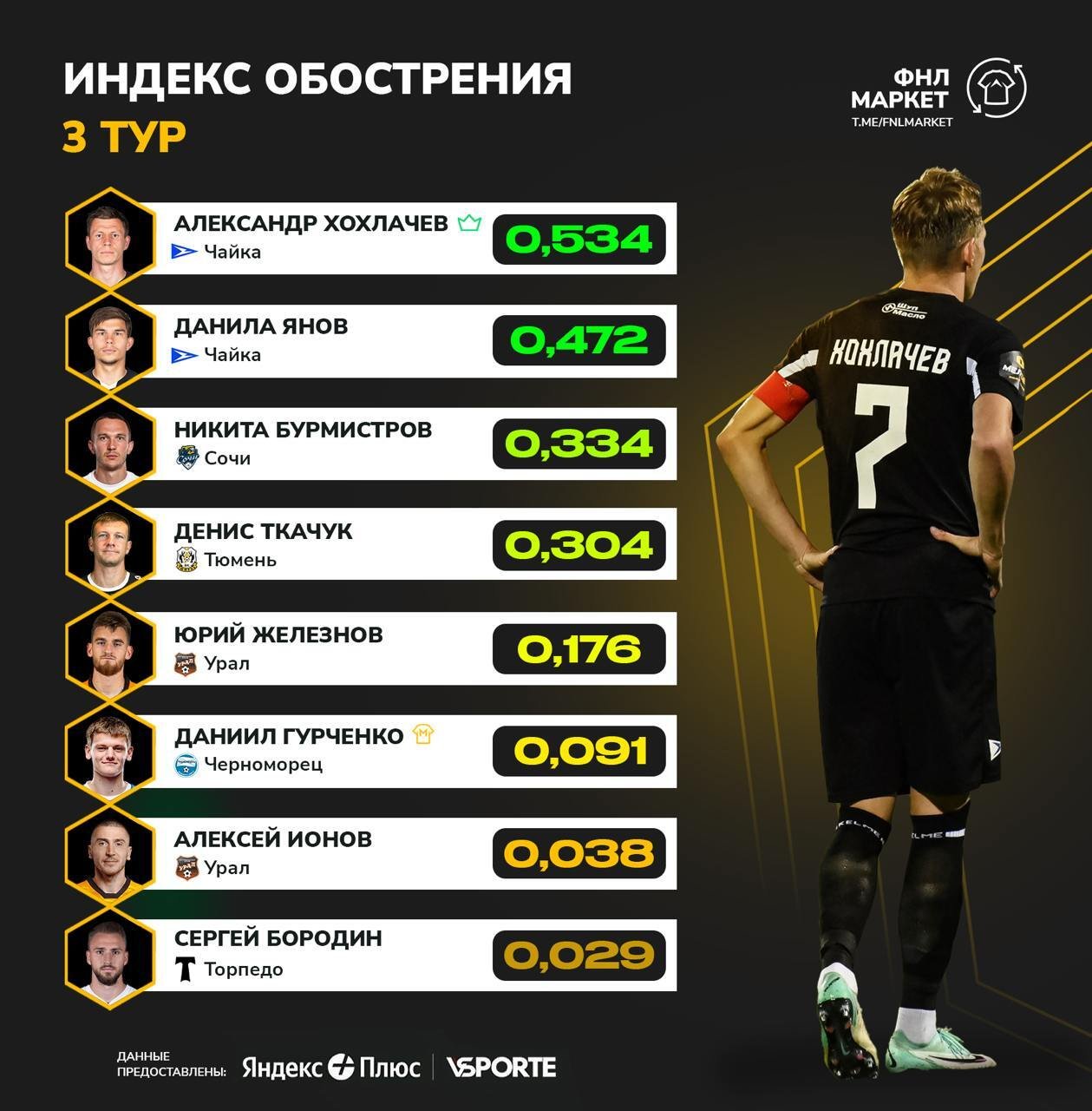 Полузащитник «Тюмени» Денис Ткачук вошёл в число лидеров по «обострению» в 3-м туре Мелбет-Первой лиги.