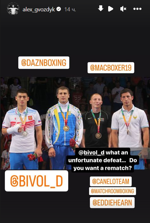Бывший чемпион мира по боксу в полутяжёлом весе украинец Александр Гвоздик разместил публикацию у себя в социальных сетях, в которой обратился к россиянину, чемпиону WBA в полутяжёлом весе Дмитрию Биволу.