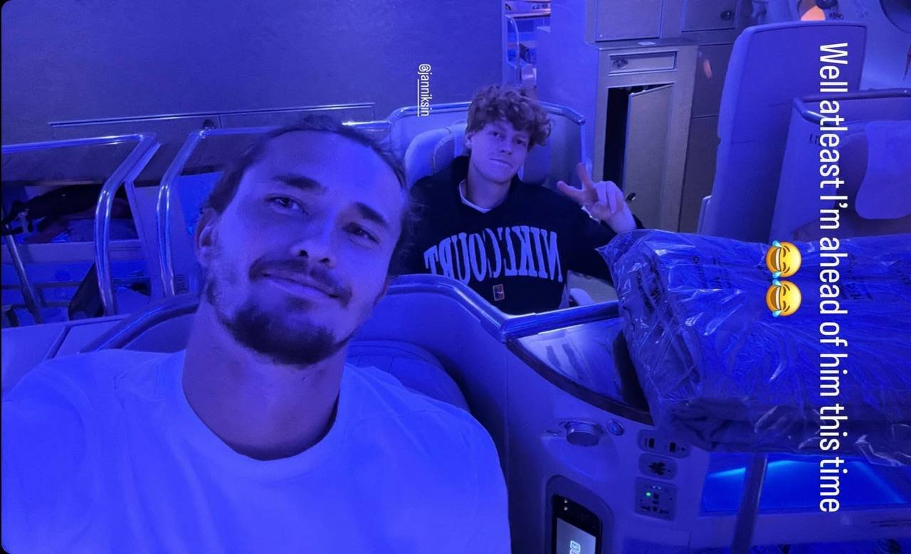 Зверев поделился с болельщиками снимком, на котором видно, что спортсмены сидят в самолёте, при этом немец находится на ряд впереди. Вторая ракетка мира сопроводил фотографию забавной подписью, намекая на свой проигрыш на АО.