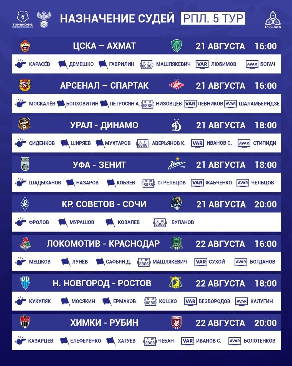 Официальный сайт РФС опубликовал назначения на 5-й тур Российской премьер-лиги.