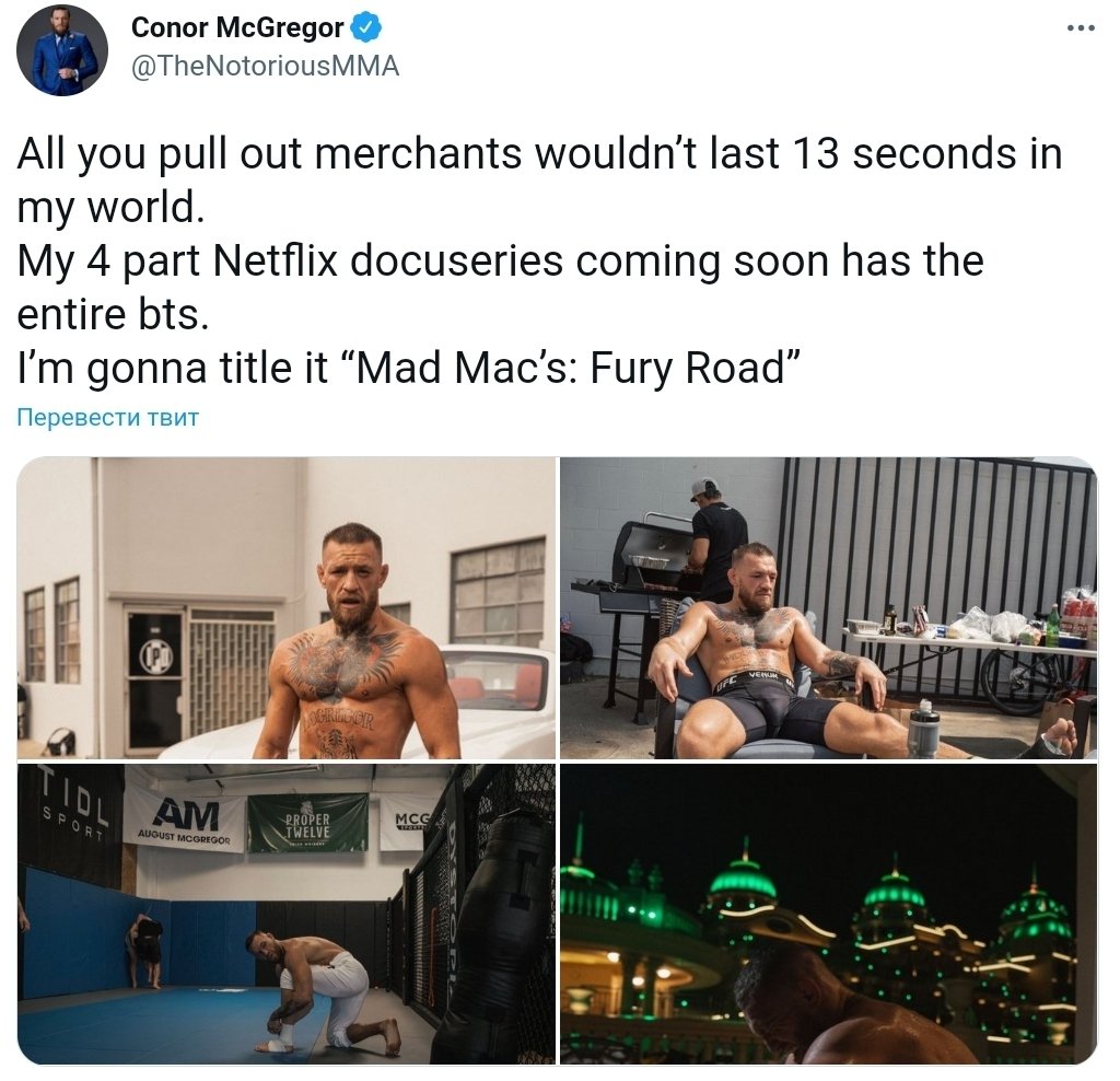 Так прокомментировал в «Твиттере» Макгрегор опубликованные снимки.