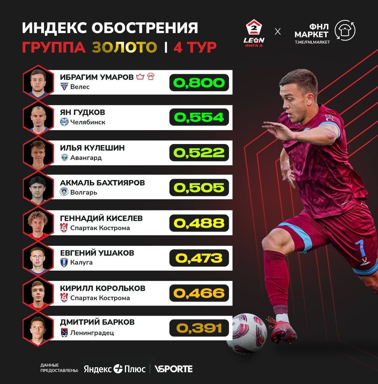 Нападающий «Ленинградца» вошёл в топ-8 самых обостряющих футболистов четвёртого тура LEON-Второй лиги А