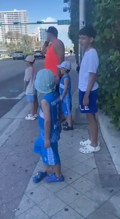 На видео сыновья российского форварда Сергей и Илья гуляют по улицам Майами в именной форме московского «Динамо».