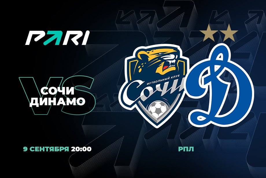 Матч «Сочи» — «Динамо» откроет программу девятого тура РПЛ. Игра состоится в пятницу, 9 сентября, и начнется в 20:00 по московскому времени. Букмекерская компания PARI оценила шансы команд и рассказала о ставках своих клиентов на грядущую встречу.