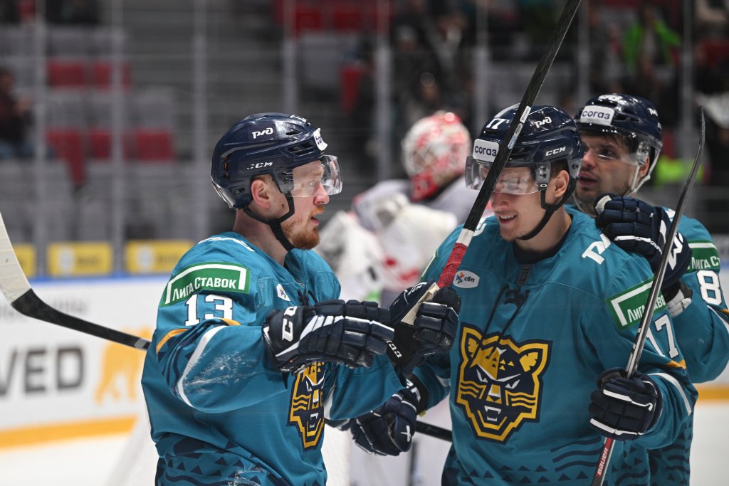 В составе бело-голубых шайбы забросили Кирилл Адамчук (23-я минута), Антон Слепышев (40) и Даниил Пыленков (45). У «леопардов» все пять голов забил 27-летний форвард Даниил Сероух (10, 26, 36, 52, 59).