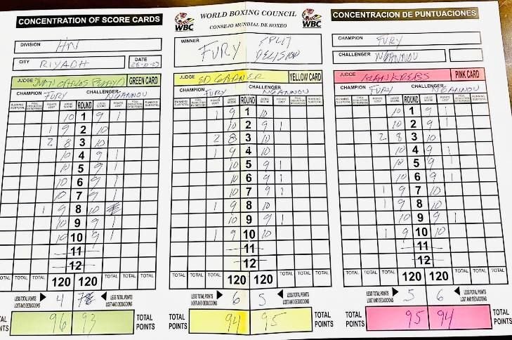 Бой продлился все десять раундов и завершился победой Фьюри раздельным решением судей. По окончании поединка в сети появились судейские записки.