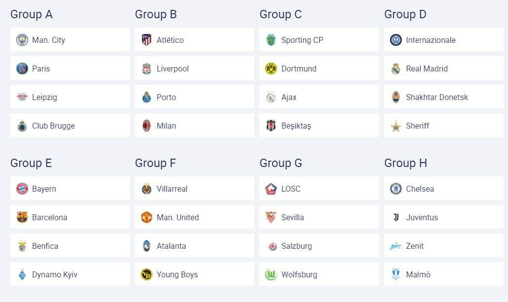 Результаты жеребьёвки группового раунда Лиги чемпионов