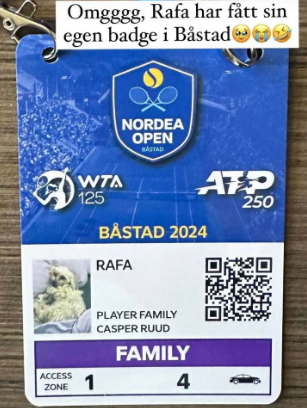 Спортсмен сообщил, что его собака Рафа получила официальную аккредитацию на турнир как член семьи.