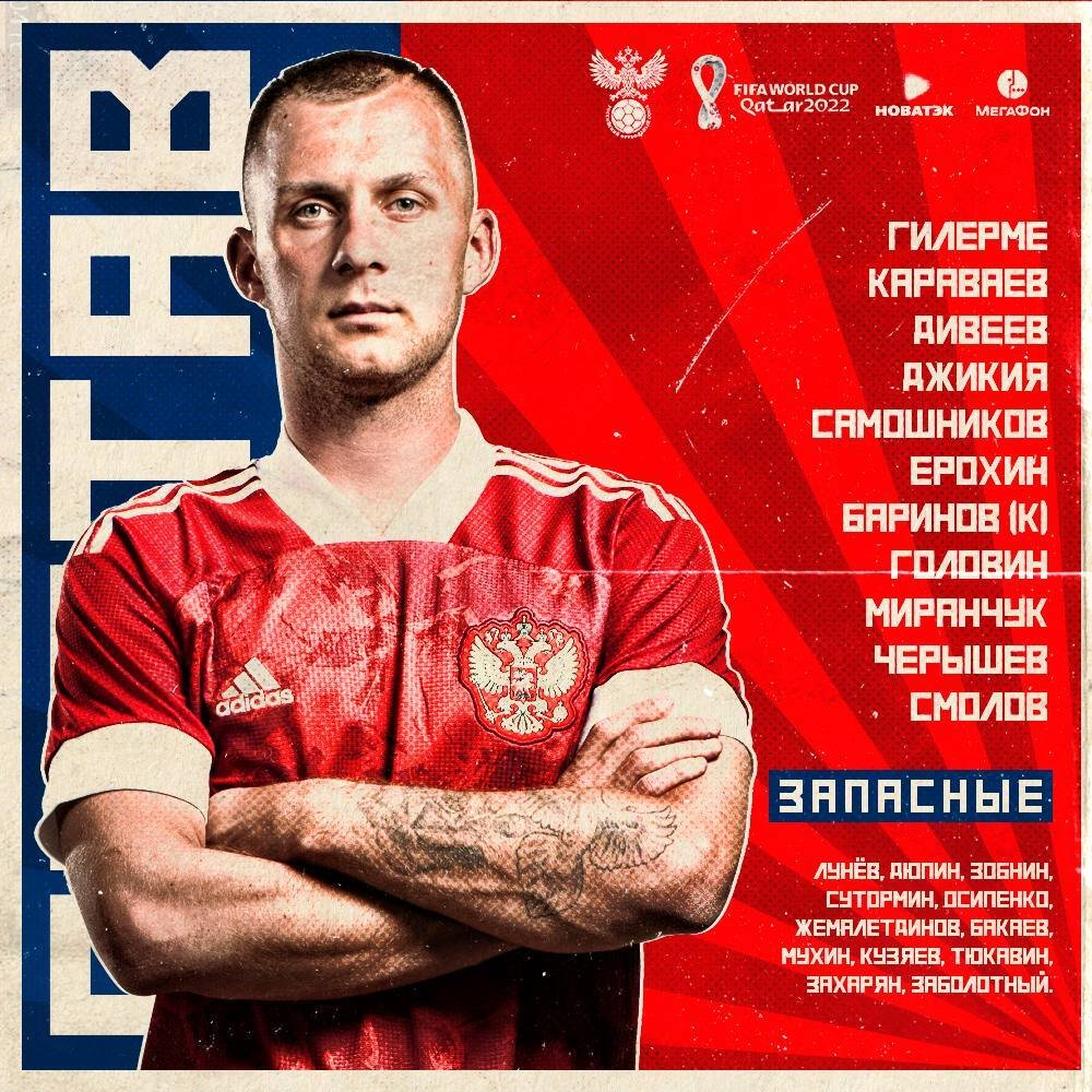 Стал известен состав сборной России по футболу на матч отборочного турнира чемпионата мира-2022 против Кипра. С капитанской повязкой выйдет Дмитрий Баринов, а в воротах будет стоять Маринато Гильерме.