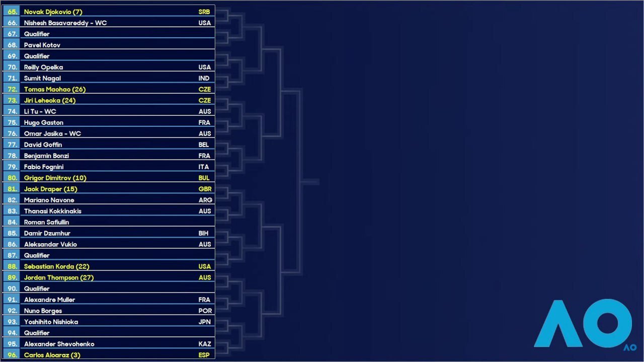 Пресс-служба Australian Open-2025 опубликовала мужскую сетку предстоящего турнира.