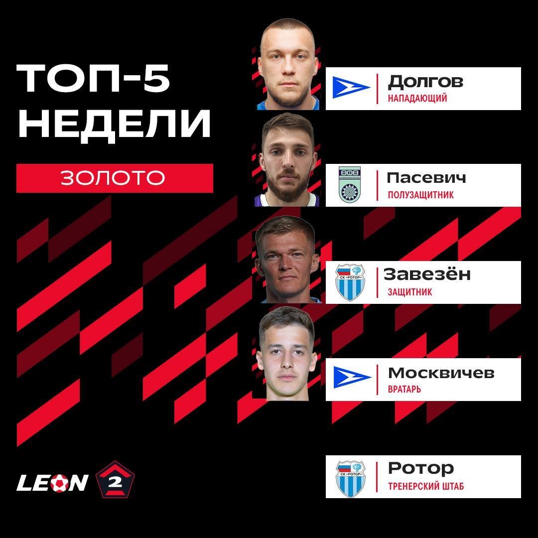 Тренерский штаб «Ротора» и защитник команды Юрий Завезён признаны лучшими в 17-м туре LEON-Второй лиги А группы «Золото».