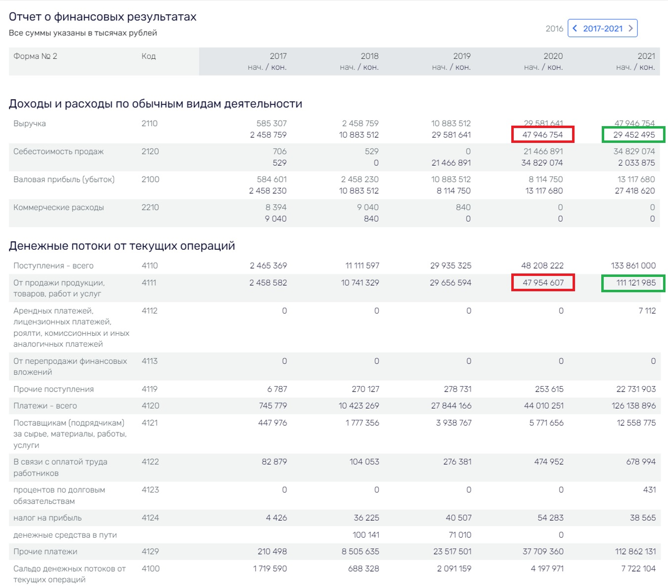 Сильное изменение также наблюдается в графе «Себестоимость продаж»: с 34,8 миллиарда в 2020-м она упала до 2,033 миллиарда. В два раза выросли управленческие (с 6,635 до 12,367 миллиарда) и прочие расходы (с 2,57 до 5,3 миллиарда).