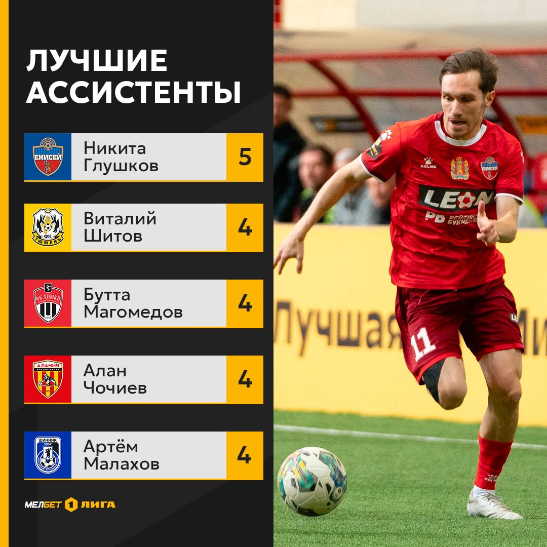 26-летний правый вингер ярославского «Шинника» Артём Малахов вошёл в пятёрку лучших ассистентов Первой лиги после 17 проведённых туров. Об этом сообщает официальный телеграм-канал турнира.