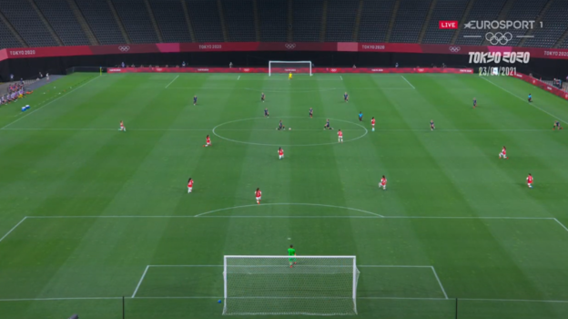 Футболистки национальных сборных Великобритании и Чили встали на колено перед матчем группы E олимпийского турнира в Токио. Подобное произошло впервые в истории ОИ.