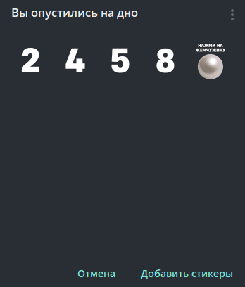 Через некоторое время в телеграм-канале петербуржцев появился пост с изображением жемчужины, предлагающим на неё нажать. В случае, если пользователь сделает это, он увидит цифры 2458 и слова: «Вы опустились на дно». Это отсылка на известную в фанатских кругах нецензурную кричалку про «Динамо».