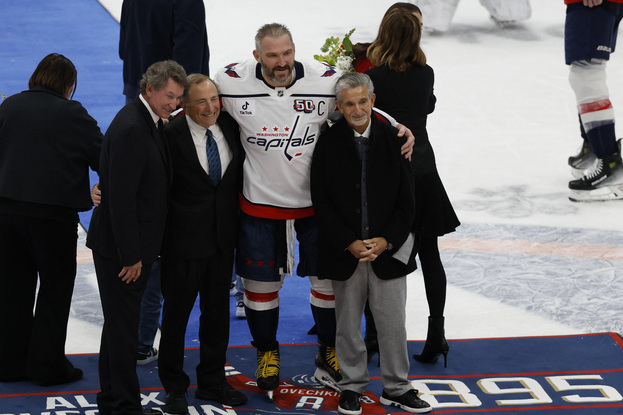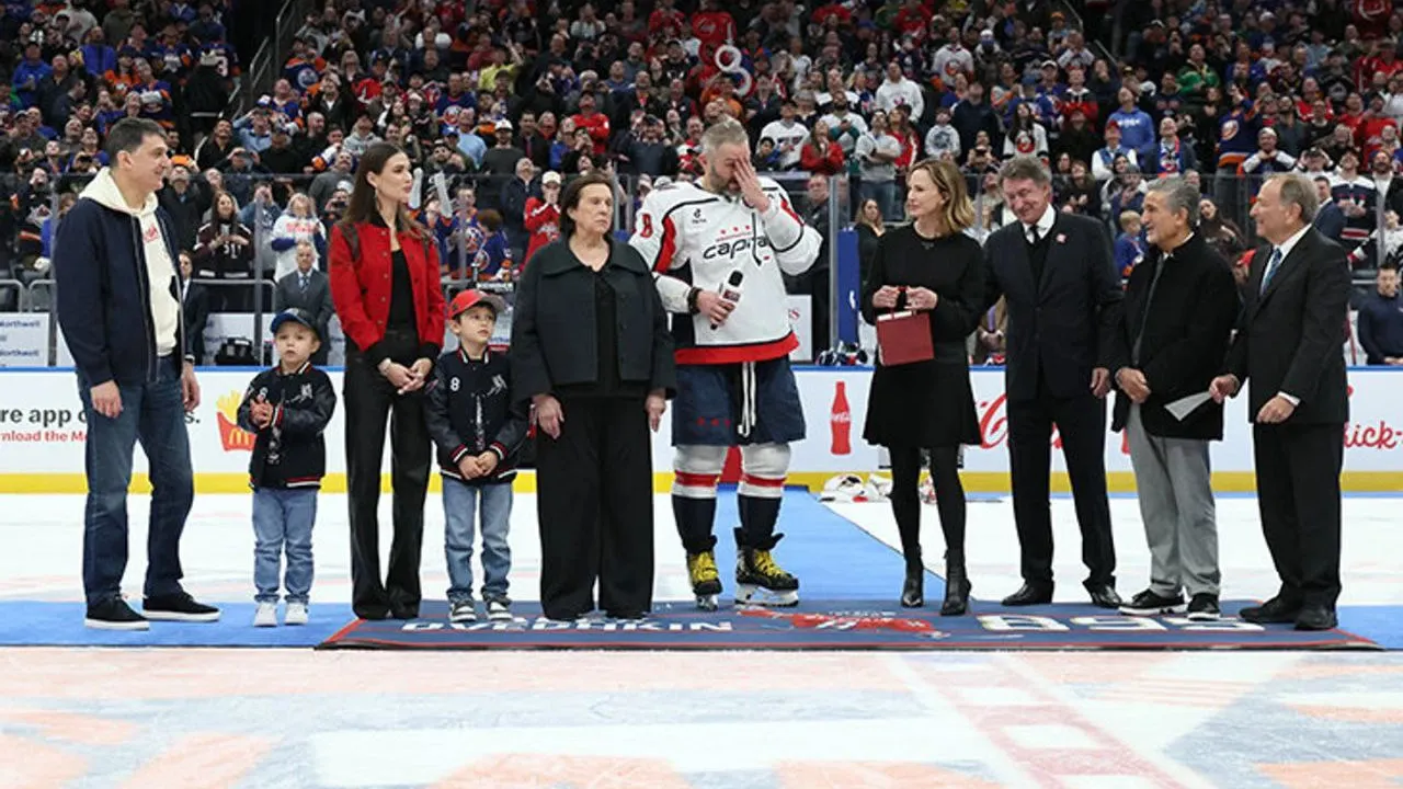 Это произошло на церемонии, когда российский форвард побил рекорд Гретцки по голам в регулярных чемпионатах Национальной хоккейной лиги (НХЛ).