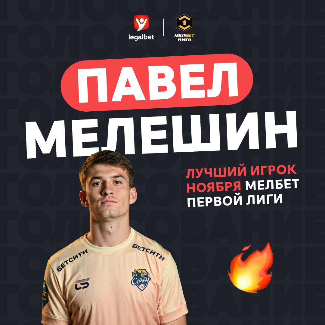 По итогам голосования, «Игроком ноября» Мелбет-Первой лиги стал Павел Мелешин.