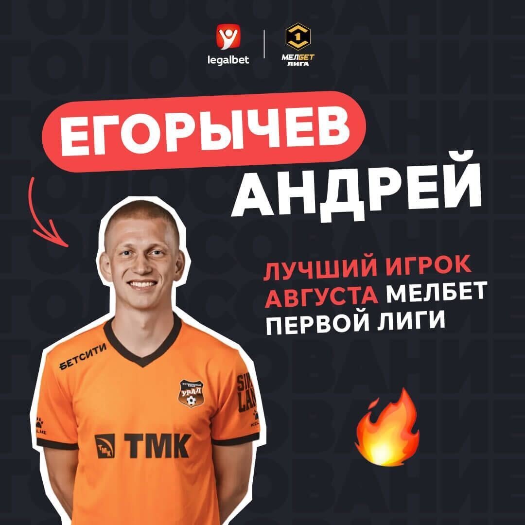По итогам голосования, «Игроком августа» Мелбет-Первой лиги стал Андрей Егорычев.