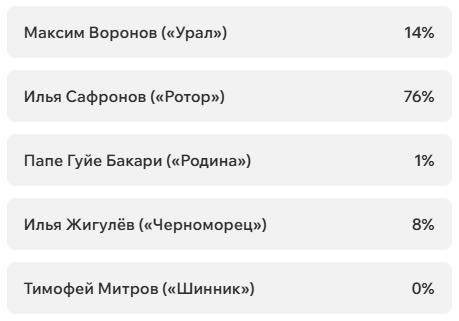 Все попытки накруток героически отражены, и по итогам голосования лучшим игроком #6 тура Лиги PARI стал Никита Чагров.