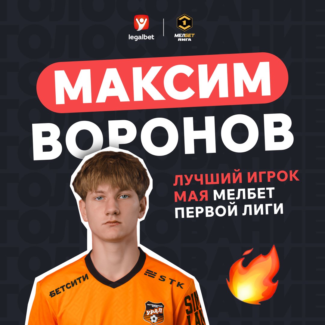 По итогам голосования, «Игроком мая» Мелбет-Первой лиги стал Максим Воронов.