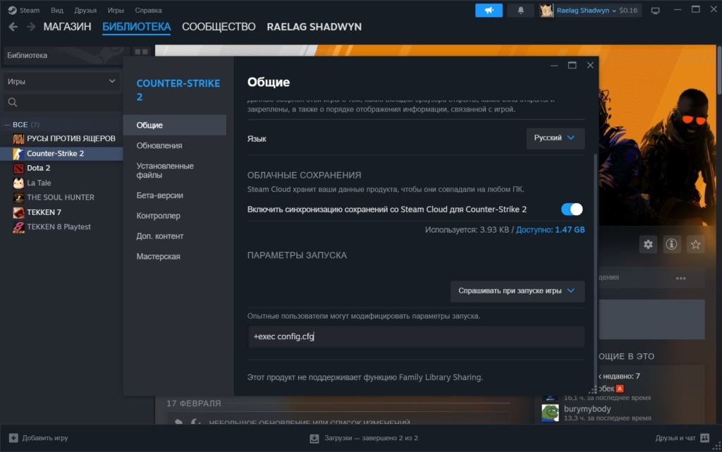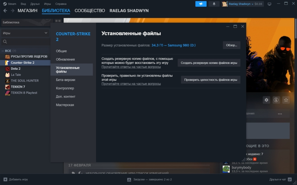 - В библиотеке щёлкните правой кнопкой мыши по Counter-Strike 2.