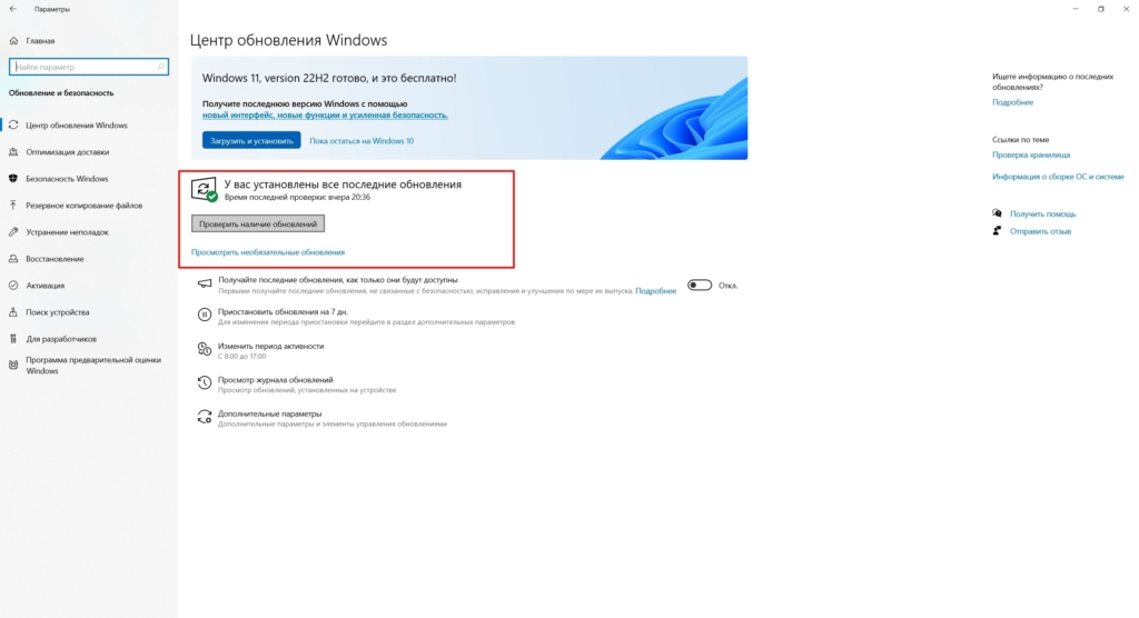 - Кликнуть на «Проверить наличие обновлений». Если есть обновление для каких-то драйверов, Windows предложит вам их скачать.