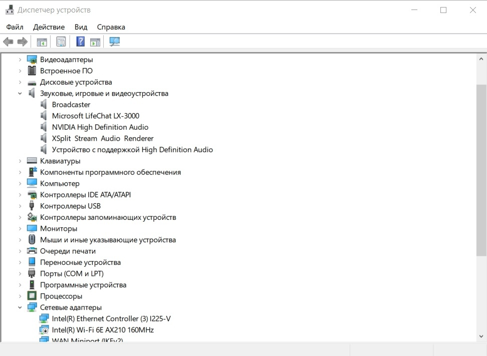 - В открывшемся окне Диспетчера устройств найдите вкладку «Звуковые, игровые и видеоустройства».