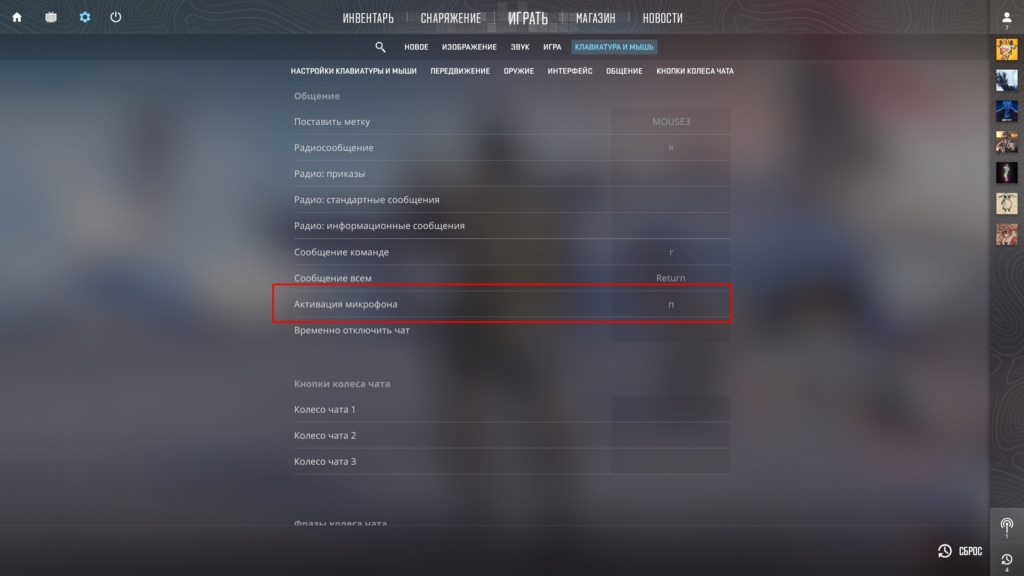 6. Кликнуть рядом со строкой «Активация микрофона» и назначить нужную клавишу.