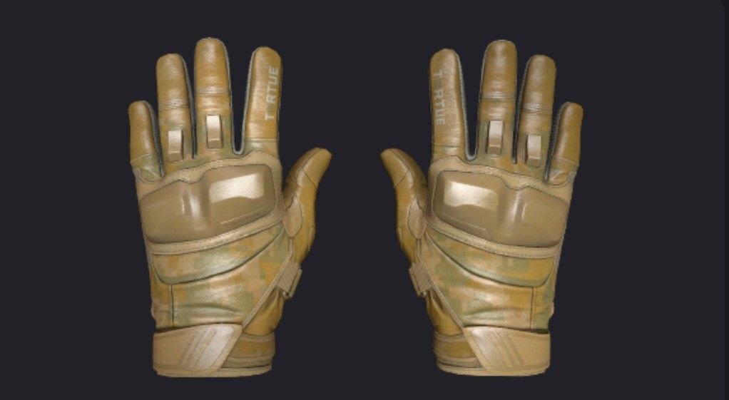 Sport Gloves | Bronze Morph — одни из самых ярких перчаток в CS. Внешняя сторона перчаток — из текстурированного материала с зелёно-коричневым рисунком. В зависимости от состояния, перчатки можно найти и за 13 000, и за 97 000 рублей.