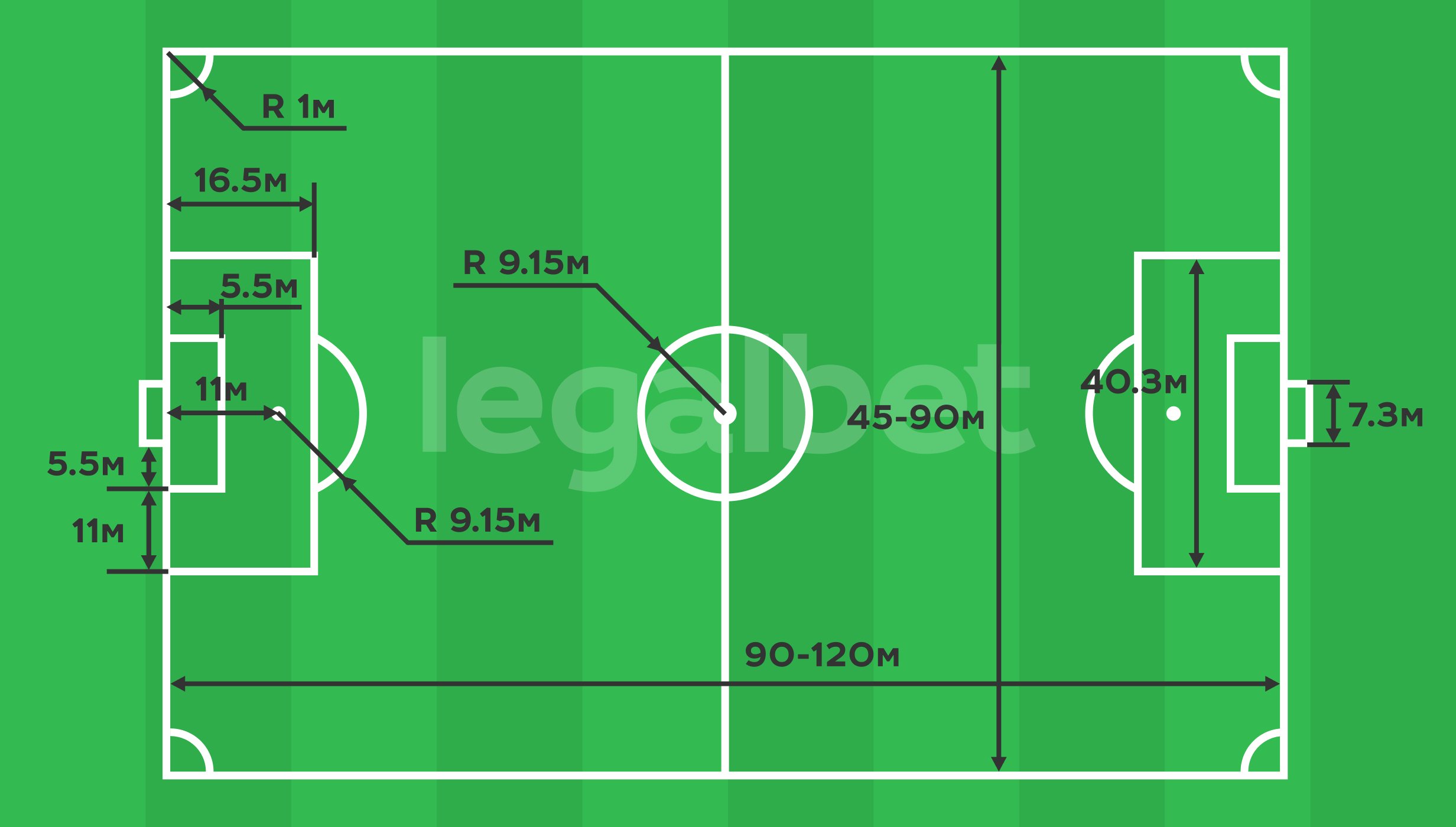 Футбольные правила не предъявляют строгих требований для размеров. Игровая площадка должна иметь форму прямоугольника, а боковая линия обязательно должна быть длиннее линии ворот. Пока эти требования выполняются, длина футбольного поля и его ширина могут меняться в широких пределах.