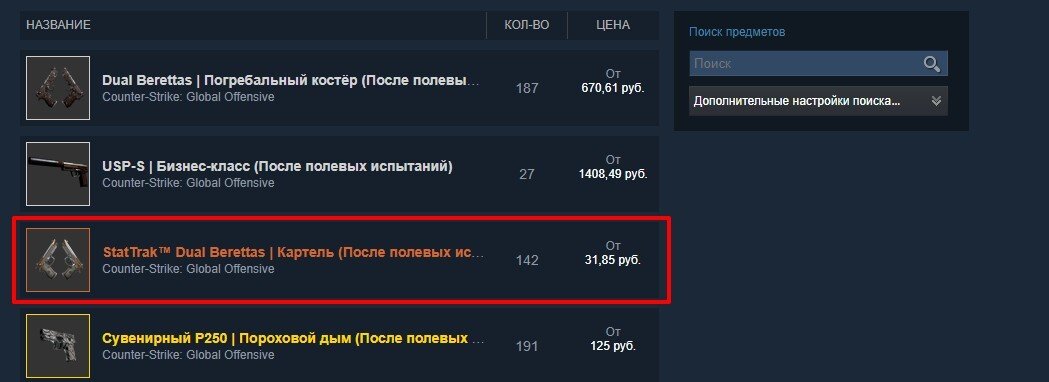 Цены скинов в CS:GO