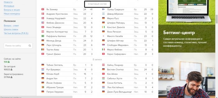 Добрый день У меня возник вопрос - у вас в матче появляется надпись (Боруссия М.: стартовый состав выложен. Айнтрахт: Стартовый состав появится в ближайшие минуты) Но где этот состав выложен, не указано) Проясните пожалуйста. С уважением, Юрий