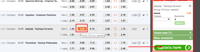 Здравствуйте, для начала зарегистрируйтесь в конторе. Внесите депозит. Затем выбирайте событие и кликните на коэффициент с правой стороны появится купон с вашей ставкой.