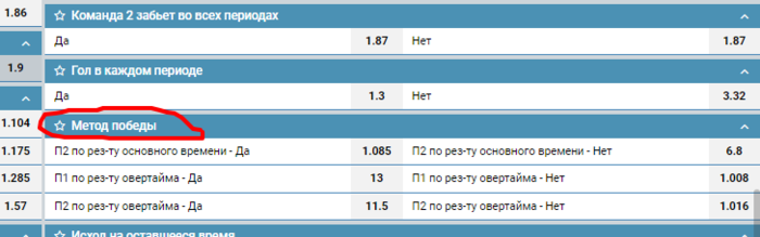 Периодически возникает желание поставить в хоккейном матче победу команды за пределами основного времени (речь именно о победе в овертайме или буллитах, не плюсом к основному времени и не определяя будет конкретно в овертайме или по буллитах. команды играют в ничью, а после побеждает выбранная мной), но просмотрев все варианты ставки на матч не могу найти такую ставку или не замечаю ее. Пожалуйста ткните носом, подскажите как правильно называется ставка с таким сюжетом. Желательно по конторе 1x ставка или марафон.