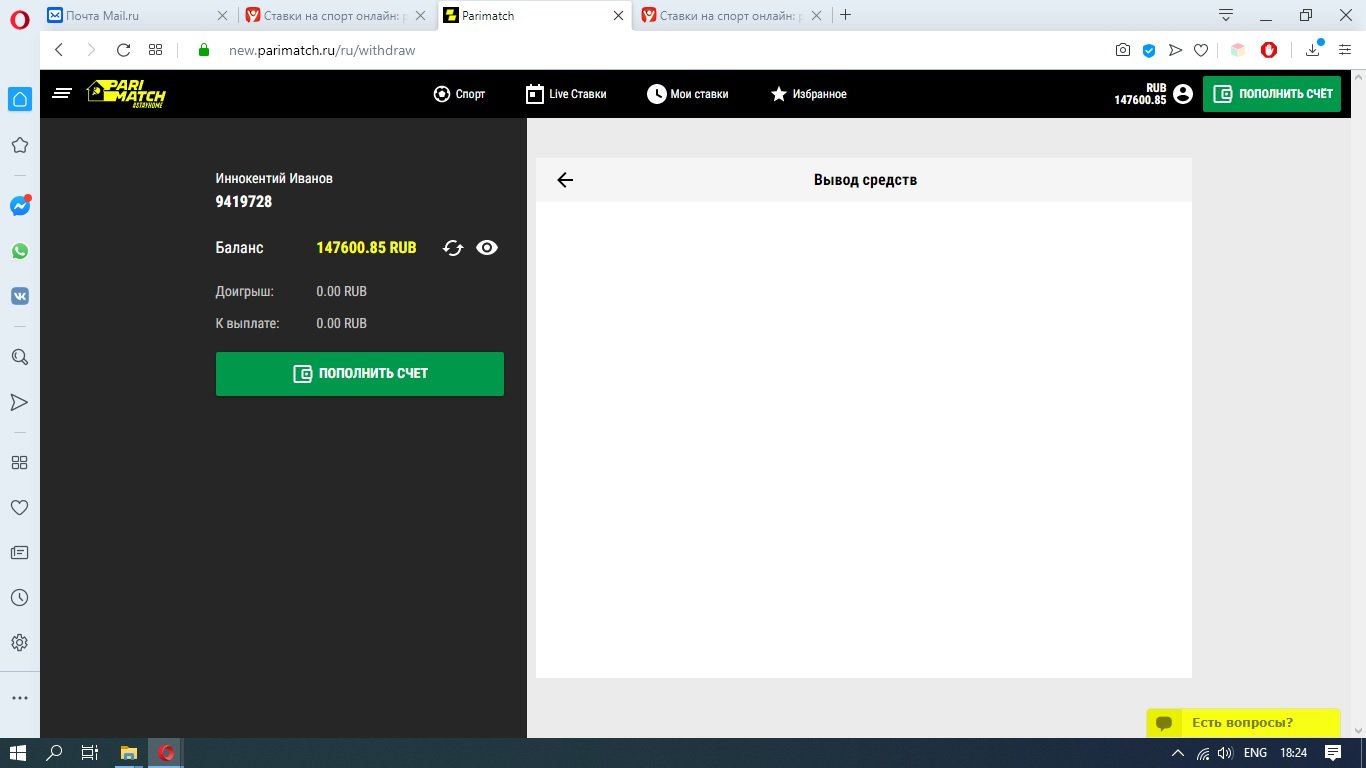 Здравствуйте! Поставил в Parimatch.ru денежные средства на вывод в субботу 25 апреля 2020 года, сумма 140000 рублей, по выплате отказали, сообщили, что нужно пройти повторную процедуру верификации. На их запрос отправил им фото паспорта и селфи с паспортом. Затем запросили отправить фото паспорта еще раз, с регистрацией, и с квитанцией ЖКУ. Паспорт настоящий, все документы легальны, так как я ранее проходил верификацию в салоне Лиги ставок. Не могу вывести уже 5 день, сегодня так же отправлял фото паспорта. Помогите пожалуйста разобраться в данной ситуации.