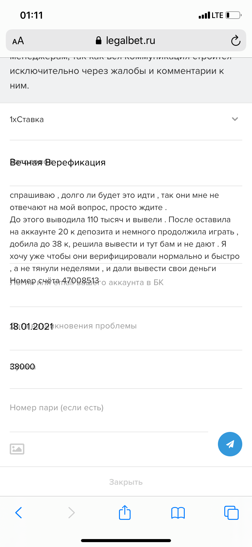 Жалобу тоже почему-то не могу добавить на 1xstavka. Она просто не отправляется , тупит и все.